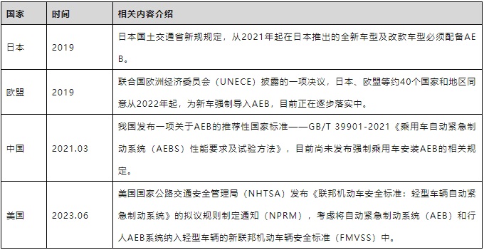 圖表24. 全球主要國家AEB相關法規(guī)政策情況