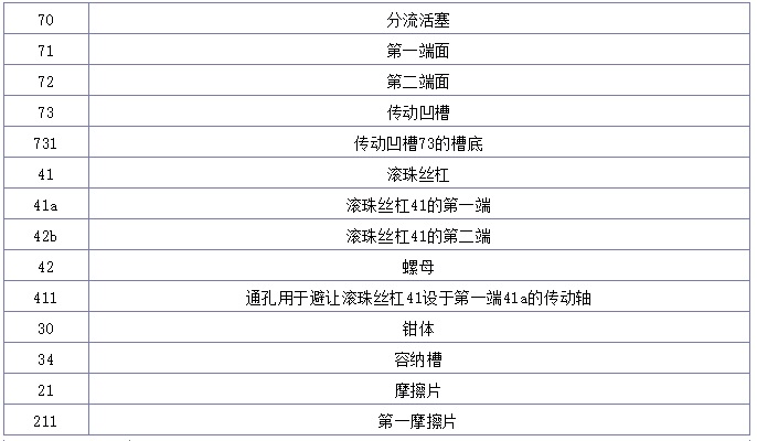 - 創(chuàng)新點(diǎn):分流活塞設(shè)計(jì)成兩個(gè)端面,端面上設(shè)有分流凸起,能夠分流驅(qū)動力,優(yōu)化摩擦片受壓情況,避免因受力不均導(dǎo)致制動性能下降。3. 具體技術(shù)細(xì)節(jié)