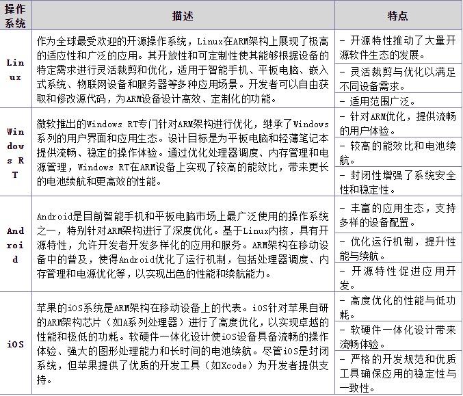 ARM架構(gòu)上常用的操作系統(tǒng)種類繁多,涵蓋從開源平臺到專有系統(tǒng),為基于ARM的設(shè)備提供了多樣化的軟件生態(tài)支持。以下是一些典型的操作系統(tǒng)及其在ARM架構(gòu)上的特點(diǎn)和應(yīng)用優(yōu)勢。
