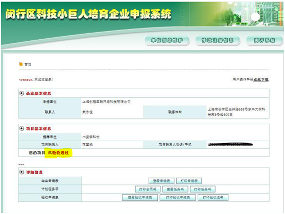 2018年4月3日,我司喜獲上海市閔行區(qū)科學技術(shù)委員會、財政局制的驗收證書,閔行小巨人科技項目驗收成功,并獲得“閔行小巨人”項目資金支持。
