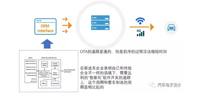 從這個(gè)意義上來看,這打破了原來既有的整車開閥制度,在G6到G5的開發(fā)階段很難有足夠的時(shí)間來軟件做完,使得G4的試驗(yàn)認(rèn)證的工作只能覆蓋基礎(chǔ)的這部分。事實(shí)上,越來越短的開發(fā)周期和越來越多的軟件開發(fā)工作,確實(shí)成了一組矛盾。這也是OTA如果實(shí)現(xiàn)在C端的更新,對于車企的很大的意義,它能拾遺補(bǔ)漏,幫助車企把問題進(jìn)行修正,繞過了4S店的環(huán)節(jié)。