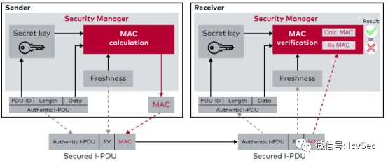 SecOC模塊,也稱為身份驗證消息,用于驗證兩個ecu之間的通信。這種驗證可以防止第三方注入或仿冒正確的通信伙伴。