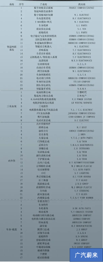 ▲圖1. 廣汽蔚來(lái)的BOM表