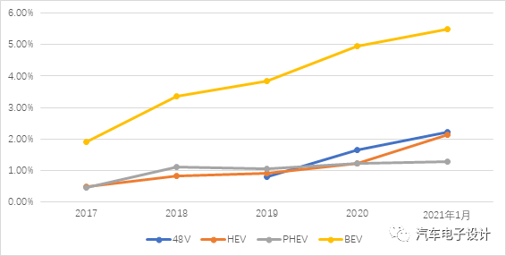 2021年1月歐洲新能源汽車銷量