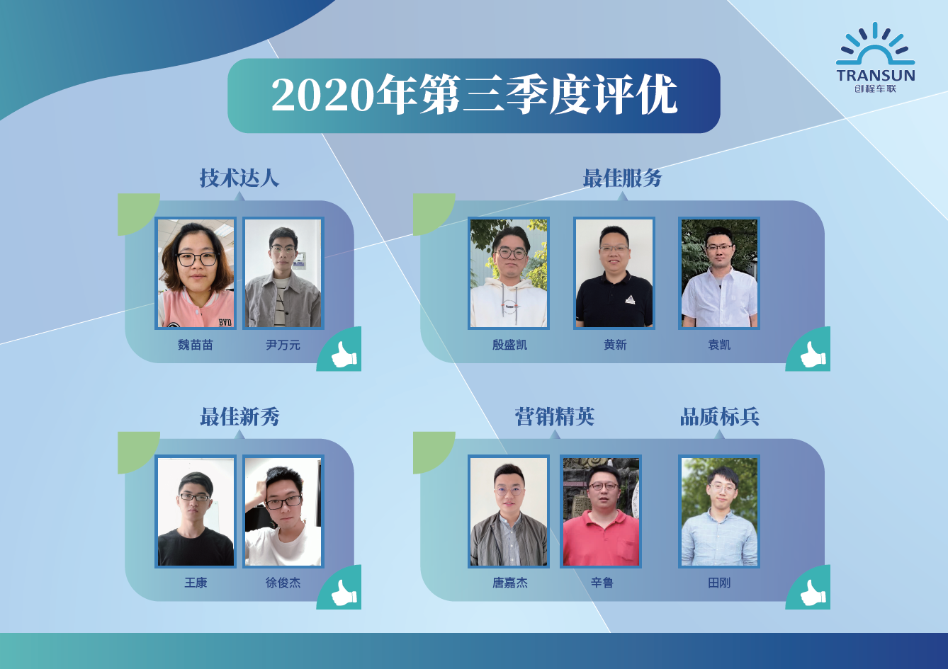 經(jīng)過(guò)層層篩選,第三季度優(yōu)秀員工評(píng)選活動(dòng)已圓滿落下帷幕,他們分別是:技術(shù)達(dá)人魏苗苗,尹萬(wàn)元,品質(zhì)標(biāo)兵田剛、最佳服務(wù)殷盛凱、黃新、袁凱,最佳新秀王康、徐俊杰,營(yíng)銷精英唐嘉杰、辛魯。他們用實(shí)際行動(dòng)證明了在平凡的崗位上也能做出不平凡的貢獻(xiàn),是大家學(xué)習(xí)的榜樣和楷模。