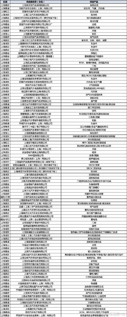 由于上海有著非常完整的汽車零部件產(chǎn)業(yè)鏈,和長三角的零部件制造基地一起為中國的汽車工業(yè)輸送著足夠有性價比的零部件。下面是排摸的基于上汽集團(tuán)體系下的產(chǎn)品供應(yīng)鏈的情況。
