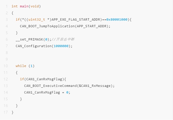 一般來說因為上位機(jī)在傳輸數(shù)據(jù)的時候,速度是很快的。我們bootloader里面的CAN 接收需要采用中斷的模式進(jìn)行收發(fā)。